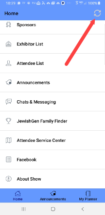 If you see a refresh icon at the top right, try tapping on it. You have to do that from time to time anyway to make you that you have the latest conference data.
